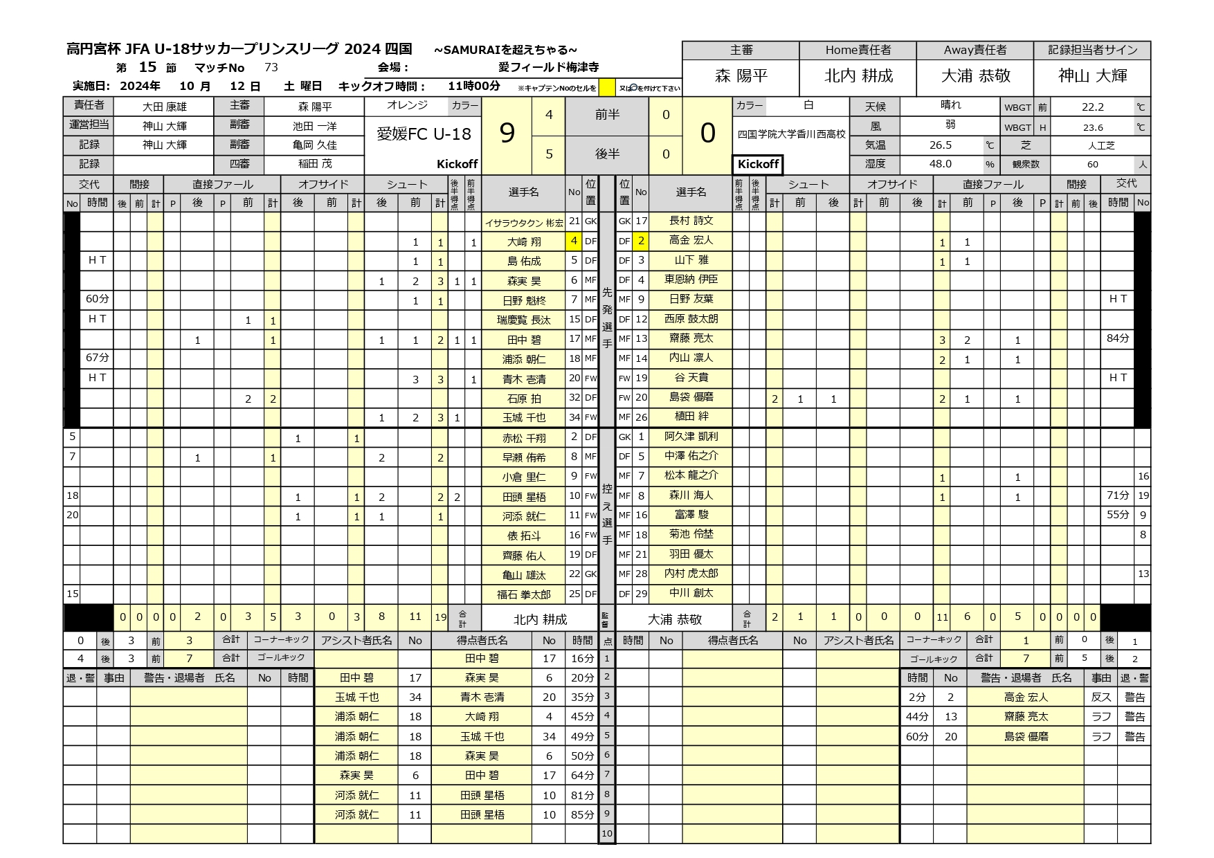 2024年 第15節 愛媛FC U-18 vs 四国学院大学香川西高校 未分類 2024.10.12 2024年 愛媛FC U-18 2024年 四国学院大学香川西高校 第15節_愛媛FCU-18対四国学院大学香川西高校_メンバー表