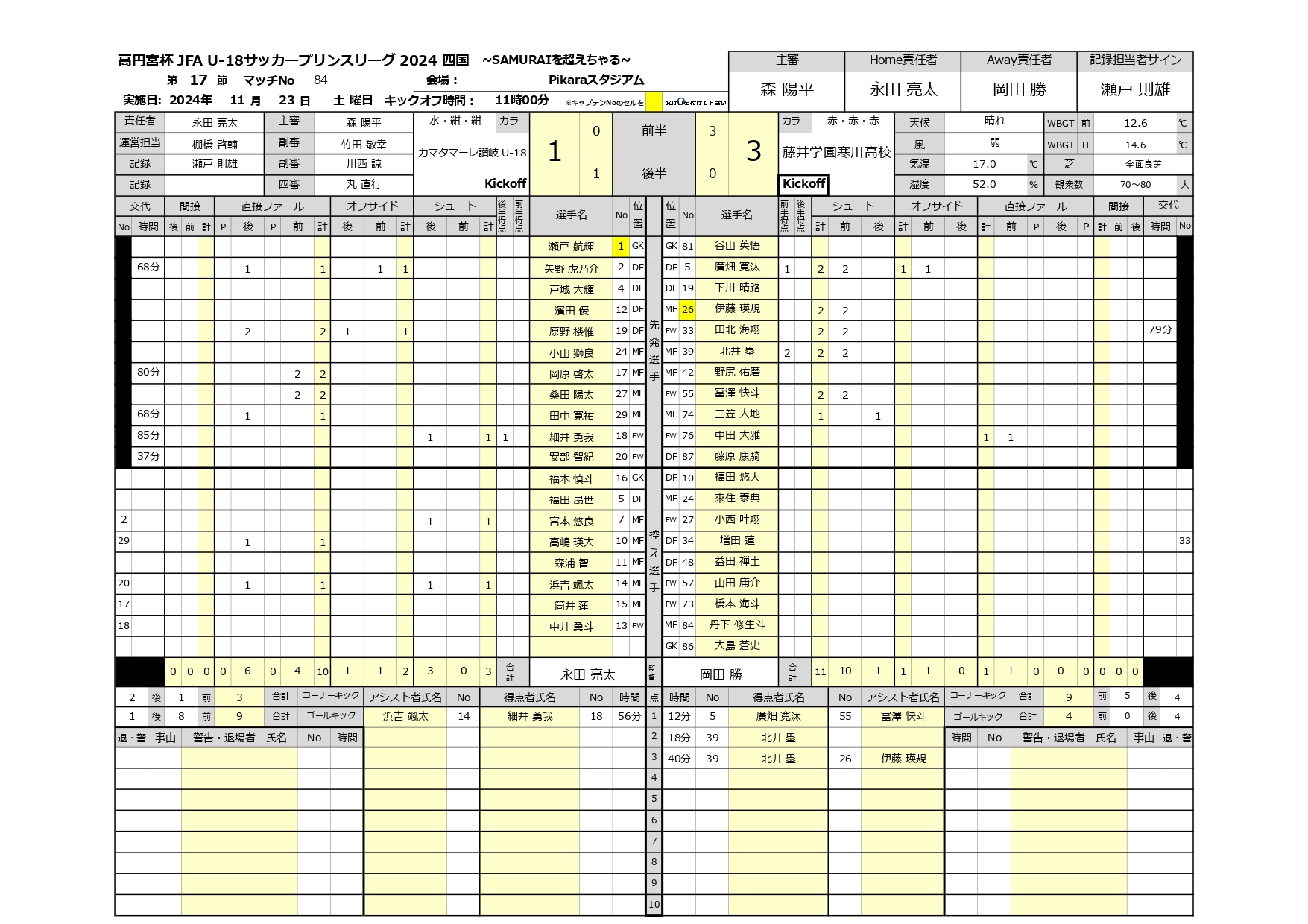 2024年 第17節 カマタマーレ讃岐U-18 vs 藤井学園寒川高校 未分類 2024.11.222024.11.23 第17節_カマタマーレ讃岐U-18_先発選手 2024年 藤井学園寒川高校 第17節_カマタマーレ讃岐対藤井学園寒川_公式記録
