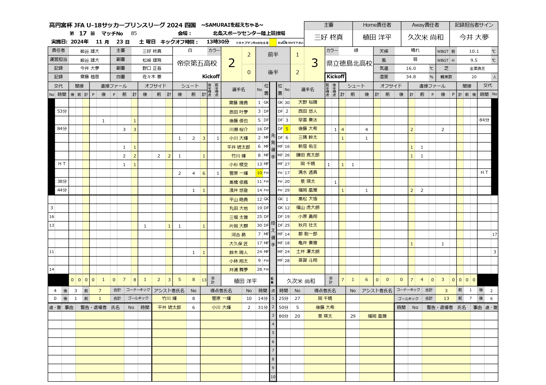 2024年 第17節 帝京第五高校 vs 県立徳島北高校 未分類 2024.11.222024.11.23 第17節_帝京第五高校_先発選手 第17節_県立徳島北高校_先発選手 第17節_帝京第五高校vs県立徳島北高校_公式記録