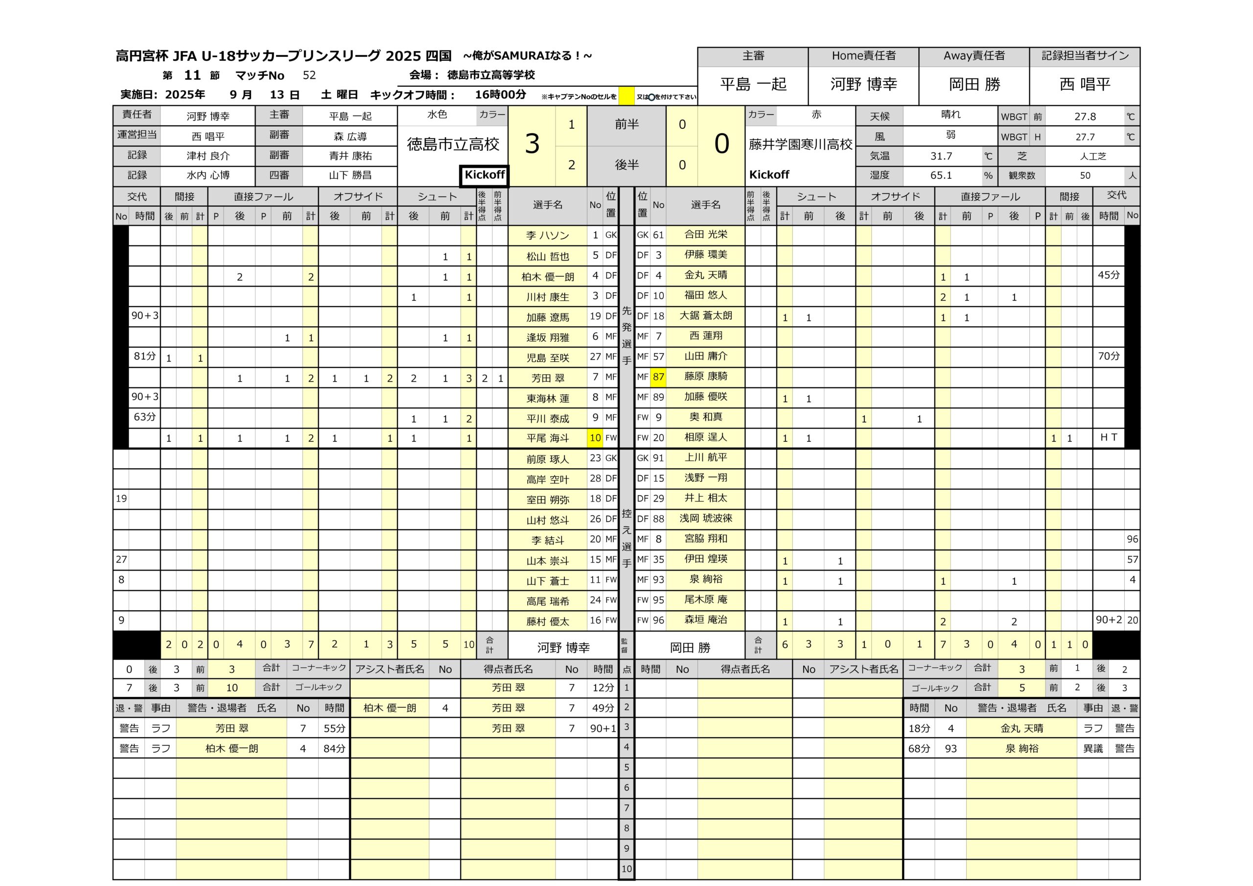 2025年 第11節 徳島市立高校 vs 藤井学園寒川高校 未分類 2025.09.122025.09.14 2025_徳島市立高等学校 2025_藤井学園寒川高等学校 第11節_公式記録_徳島市立高校vs藤井学園寒川高校
