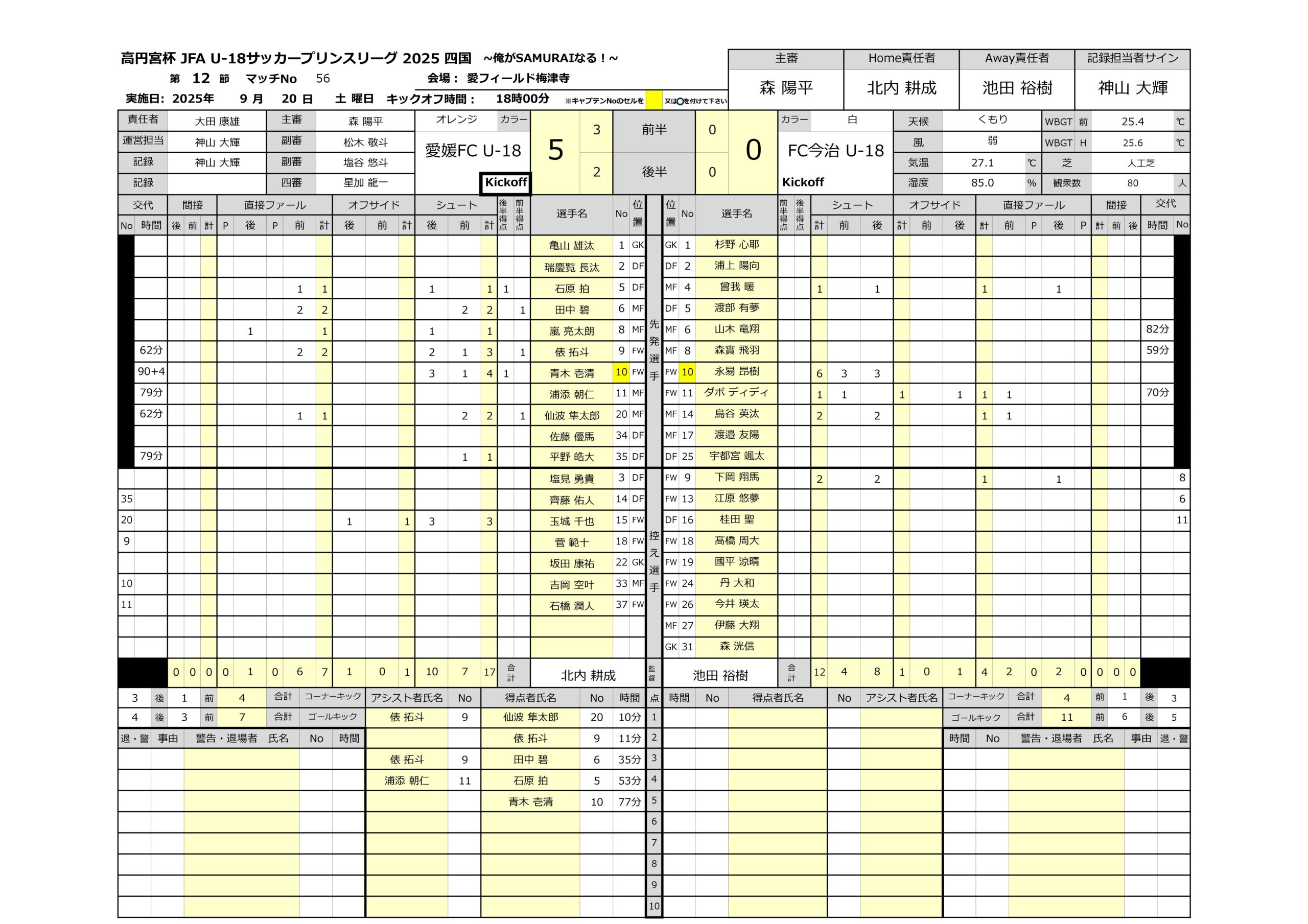 2025年 第12節 愛媛FC U-18 vs FC今治 U-18 未分類 2025.09.192025.09.20 2025_愛媛FC U-18 2025_FC今治U-18 第12節_公式記録_愛媛FC U-18vsFC今治 U-18