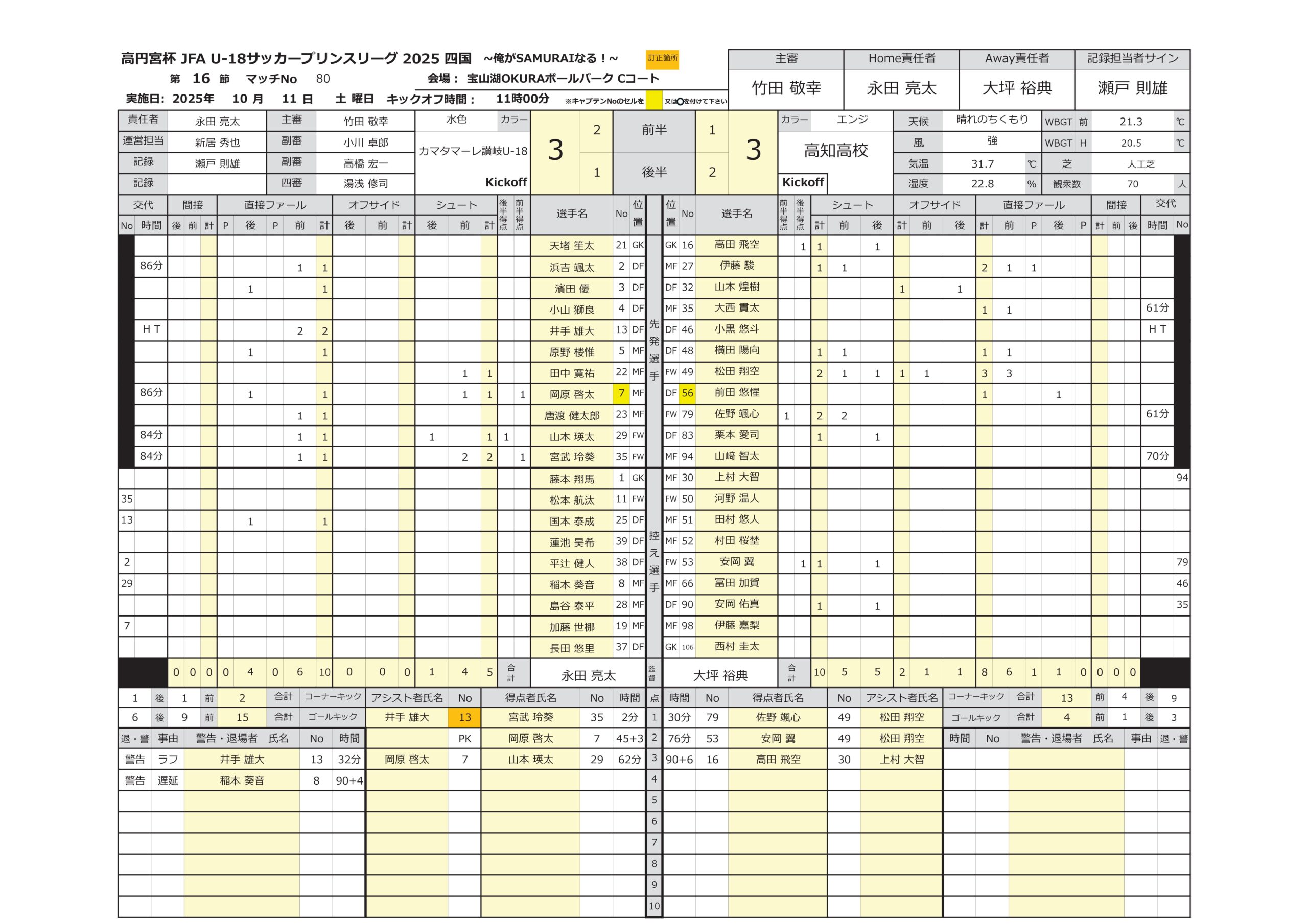 2025年 第16節 カマタマーレ讃岐 U-18 vs 高知高校 未分類 2025.10.102025.10.12 第16節_先発選手_カマタマーレ讃岐U-18 第16節_先発選手_高知高等学校 第16節_公式記録_カマタマーレ讃岐U-18vs高知高校