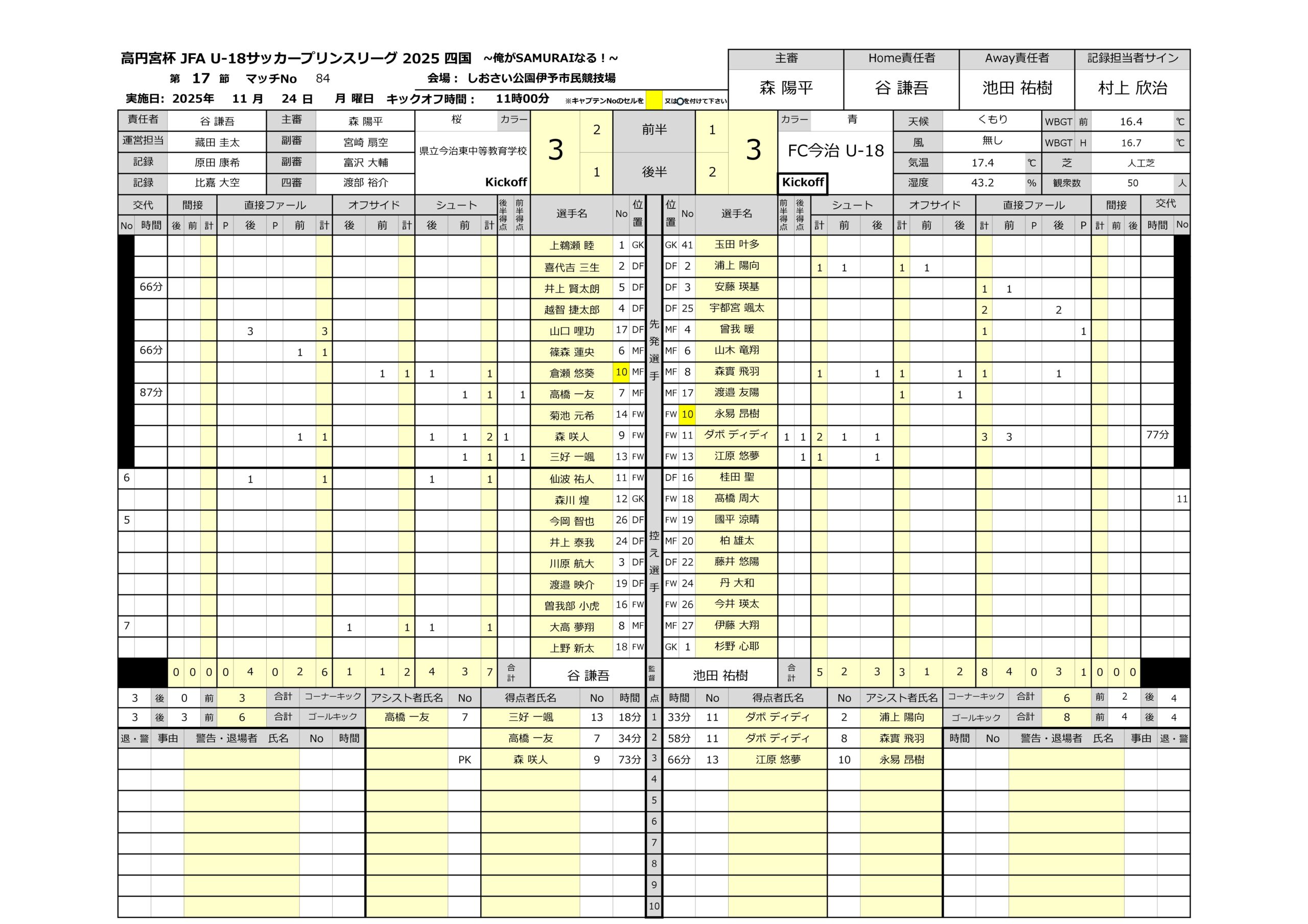 2025年 第17節 県立今治東中等教育学校 vs FC今治 U-18 未分類 2025.11.222025.11.25 第17節_先発選手_愛媛県立今治東中等教育学校 2025_FC今治U-18 第17節_公式記録_県立今治東中等教育学校vsFC今治U-18