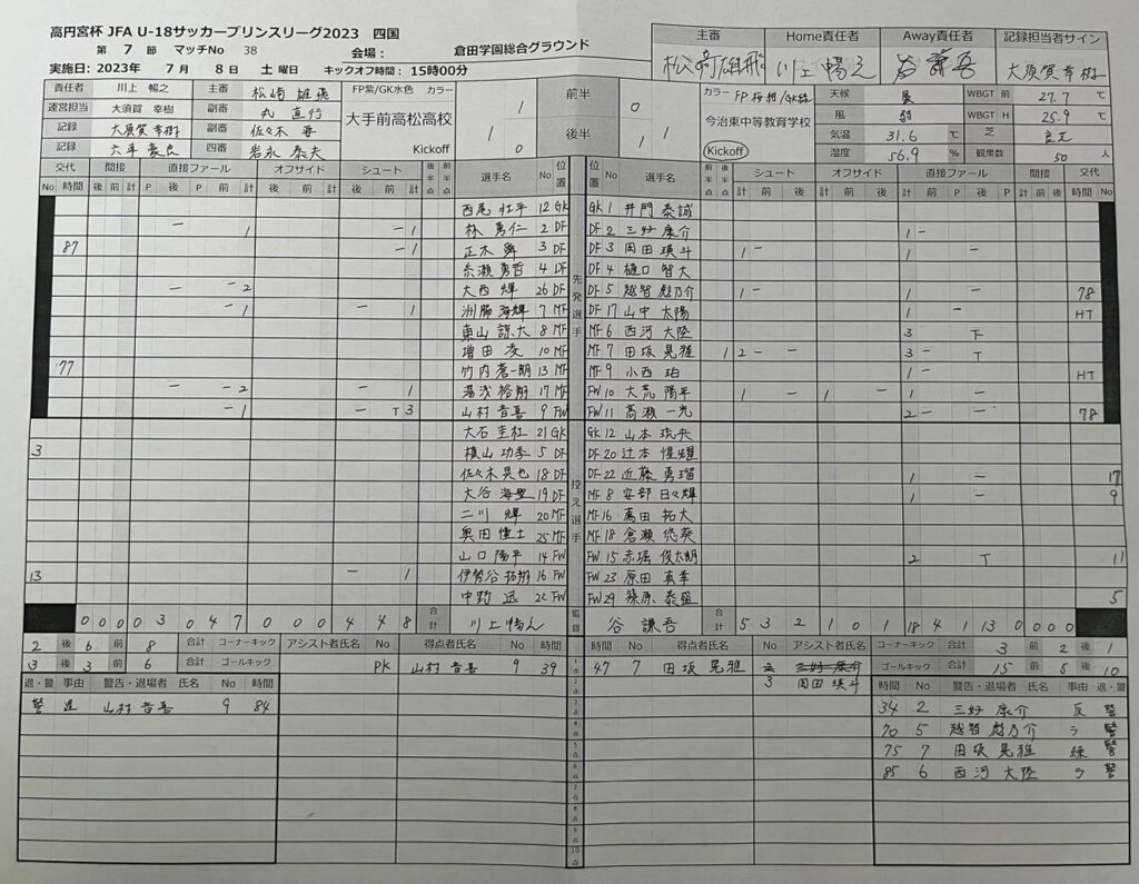 2023年 第8節 大手前高松 vs 今治東