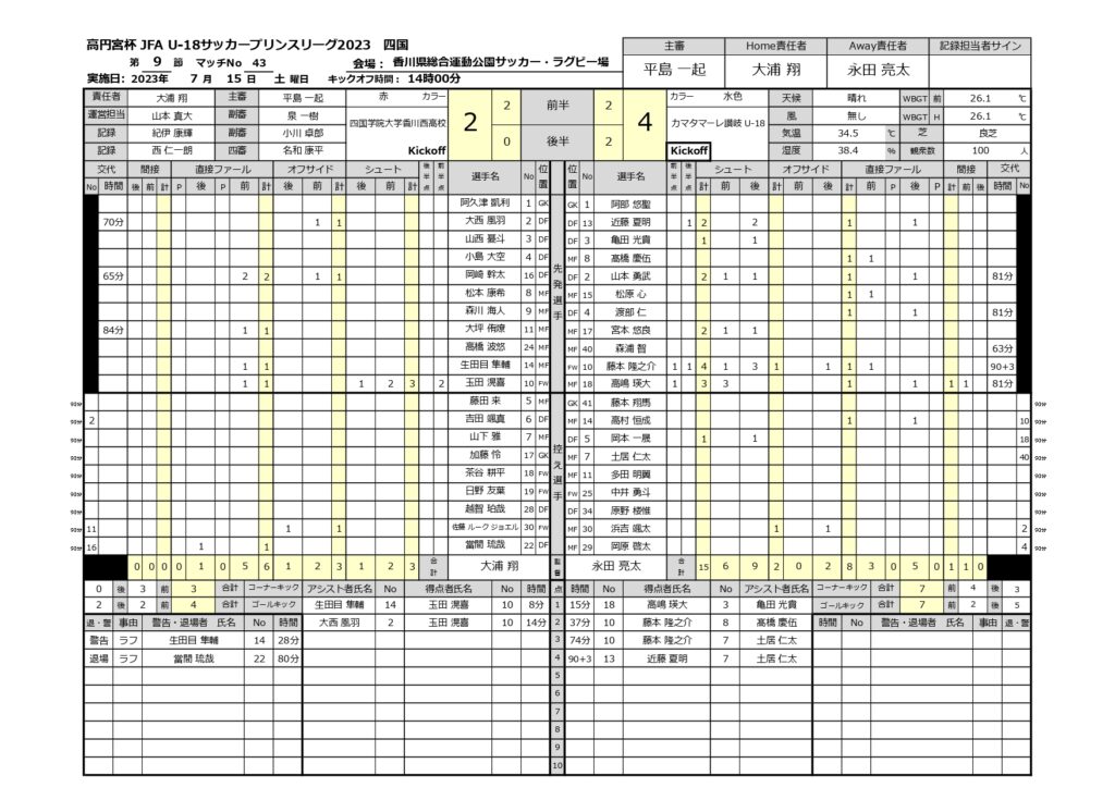 2023年 第9節 四学香川西 vs カマタマーレ讃岐 未分類 2023.07.142023.09.28 第9節_四国学院大学香川西高校_先発選手 第9節_カマタマーレ讃岐U-18_先発選手 第9節_四学香川西VSカマタマーレ讃岐_公式記録